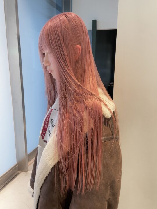 根元3cmリタッチブリーチして淡めのコーラルピンク