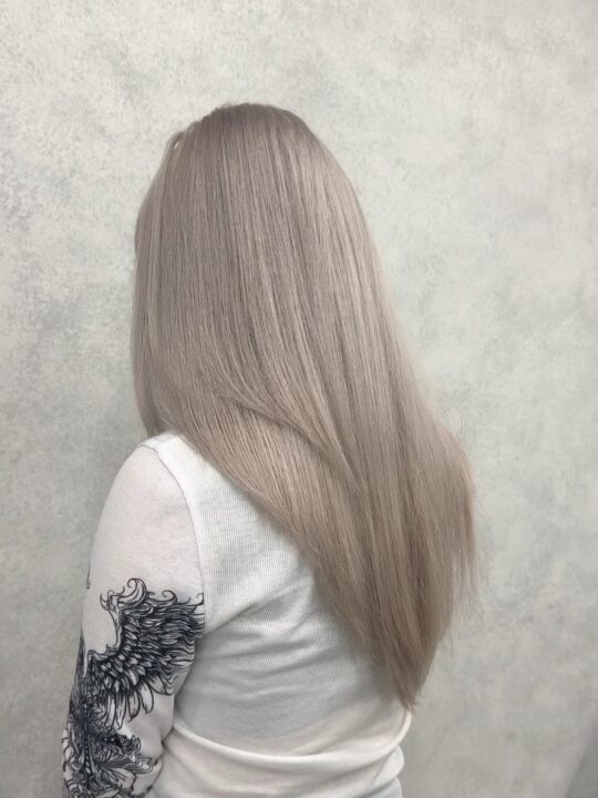 リタッチ+カラーでホワイトミルクティーに仕上げました