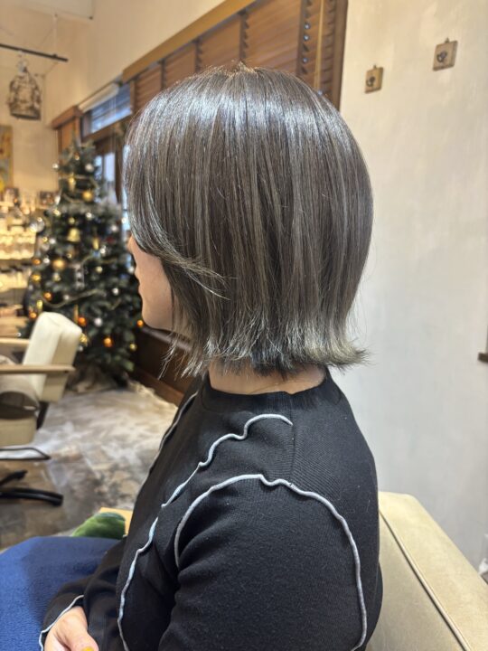 暗すぎず透明感がある優しいグレージュでブリーチの所も活かしました。