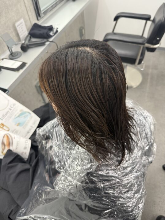 白髪染めは使わず、おしゃれ染めのブラウンを活かして白髪をぼかすようにしました!