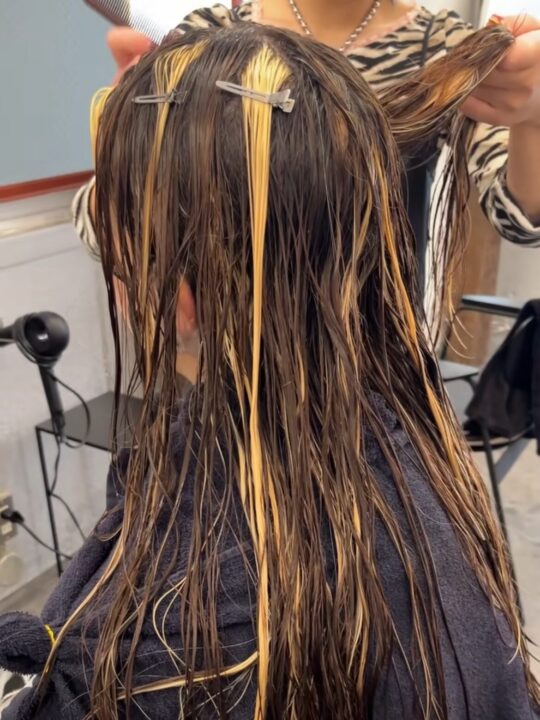 ポイントブリーチでムラを修正しつつ、ミルクティーベージュのハイライトスタイルに