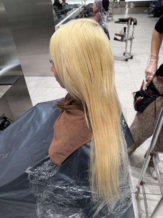 今回は、ハイトーンウルフのベースにシールエクステ80本がついた状態のお客様。
