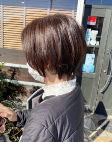 赤みとオレンジみをなるべく消せるようにオリーブっぽいグレージュに染めてみました。