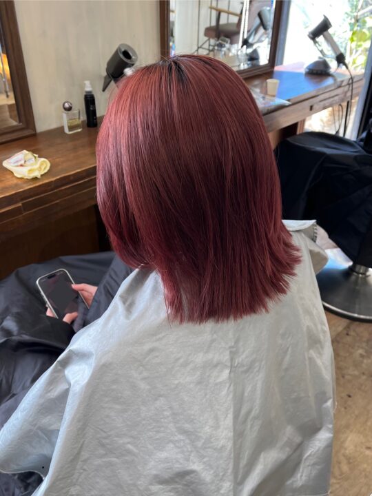 ブリーチしても赤残留が消えない時の、オンカラーで作るベージュカラーです。