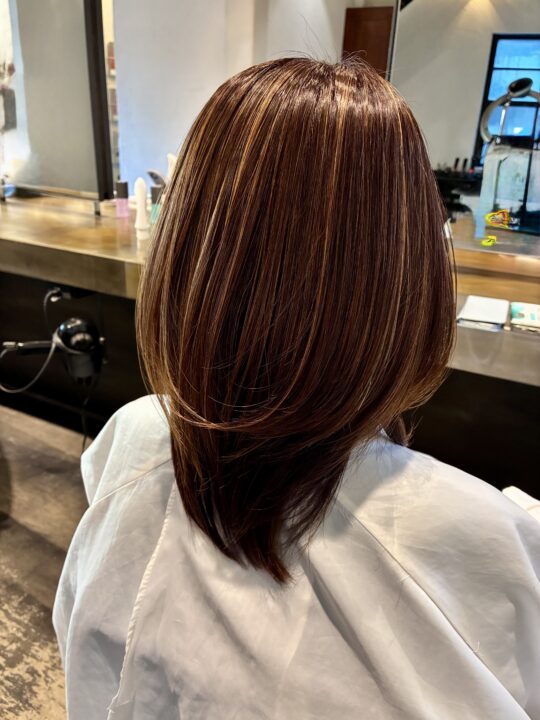 ハイライトを効果的に入れて艶感を出すブラウンにしました。