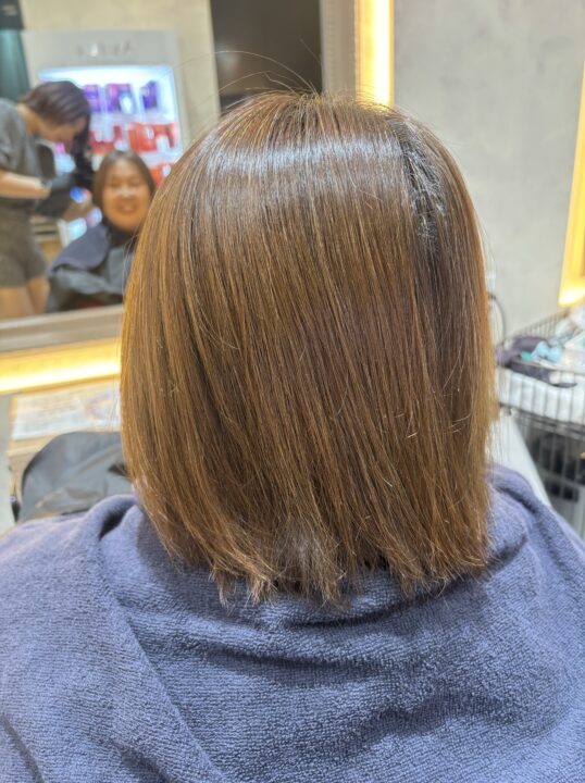 少し明るめのお色味なのでオレンジみが出やすくなるため少しだけアッシュを組み合わせて綺麗なほんのりピンクのベージュを再現しました。
