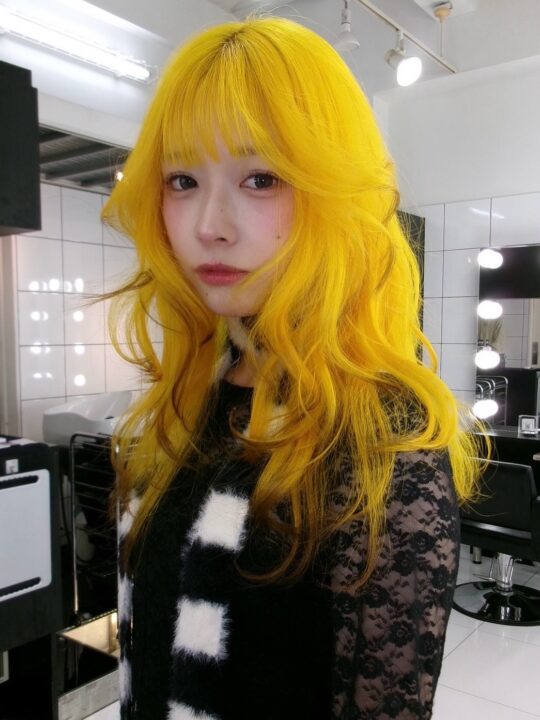 色落ちもブロンドになる1本で可愛いyellow