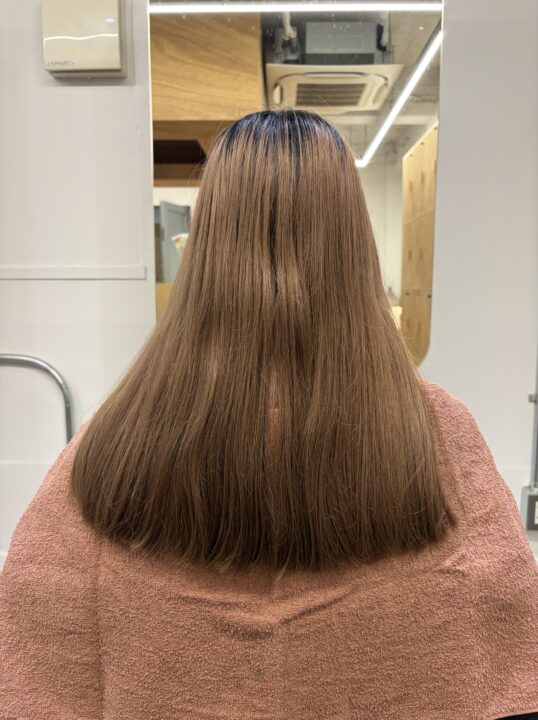 根元から約10cm下はブリーチベースです。