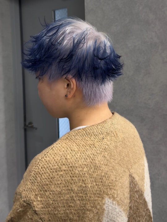 根元をホワイトに仕上げ中間毛先をブルーで仕上げました