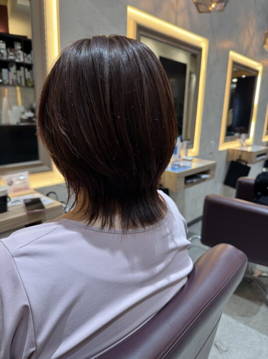 グレイカラーからのピンク系カラーのウルフスタイル