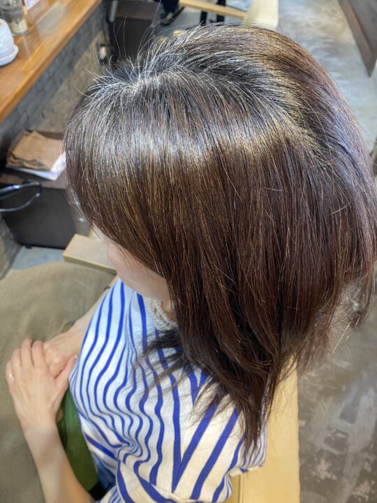 あまり明るく出来ないけれど、白髪染めみたいな色味は苦手というお客様です。