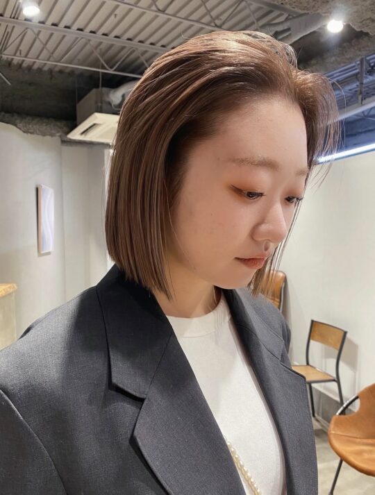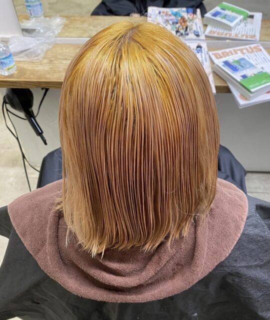 ブリーチリタッチをして、毛先のベージュの残留につながるように薬剤選定しています!