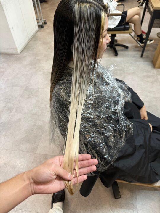 既染ブリーチを活かした高明度のリバースバレイヤージュ