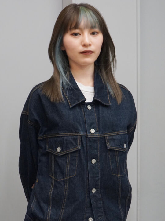 ベースはナチュラルなグレージュに、顔周り中心にトーン明るめのシアンを。