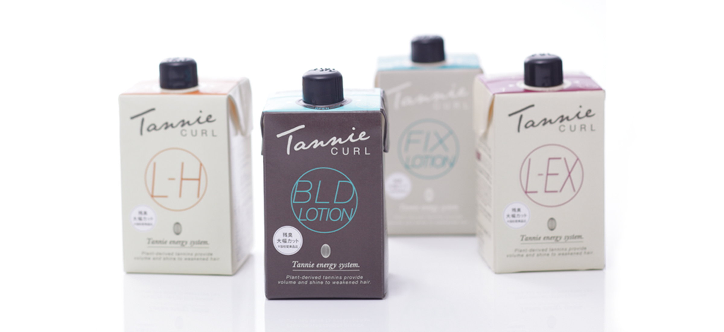 植物成分タンニンの働きを生かした、化粧品カーリング料「タンニーカール」は、コシのない髪の髪密度を高め、根元からしっかりとボリュームアップ。