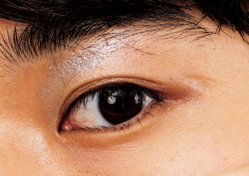 スポーティで健康的な印象にするため、ベースはきれいに作り込まず肌色に合わせたファンデーションでごく自然に仕上げる。