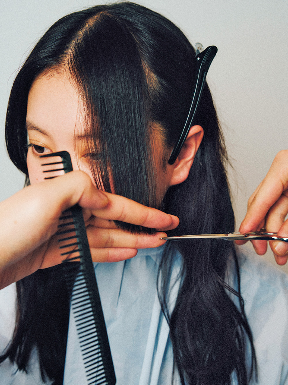 バングのライン感とAラインのシルエットを意識しながらカット。