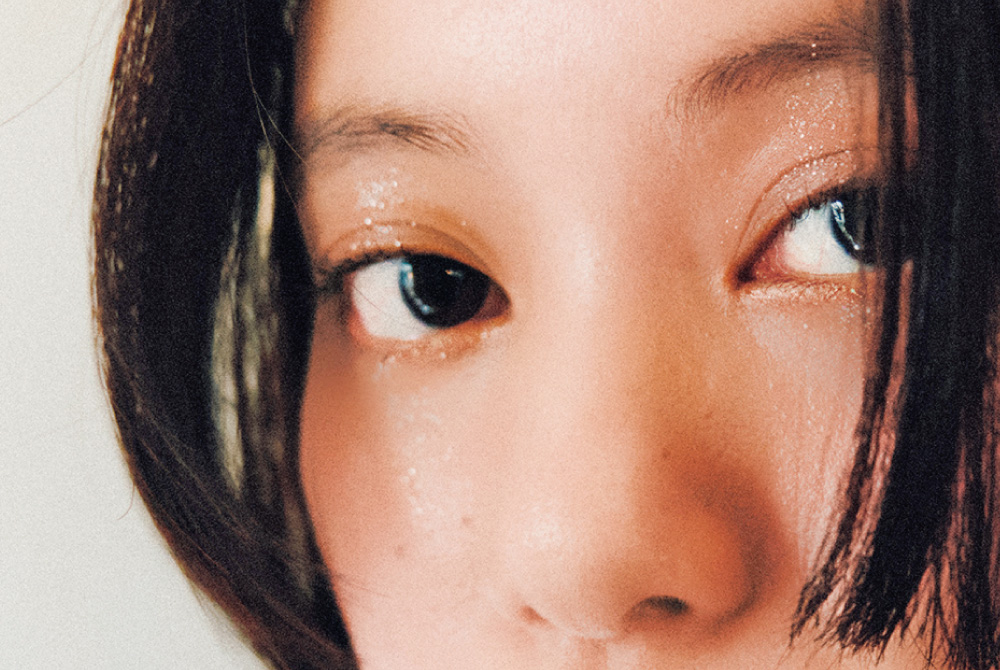 目元にはカラーを入れず、ラメの質感で 印象的に。ただしラメをまぶた全体に広げると華やかでかわいらしい印象になるので、上まぶたの中央から目の下まで縦のラインを引くようにスッとのせてクールな仕上がりに。