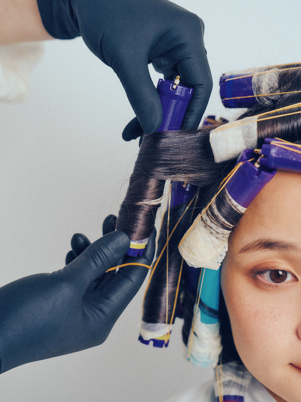 コスメカールをワインディング前に塗布。根元:EX 中間~毛先:H