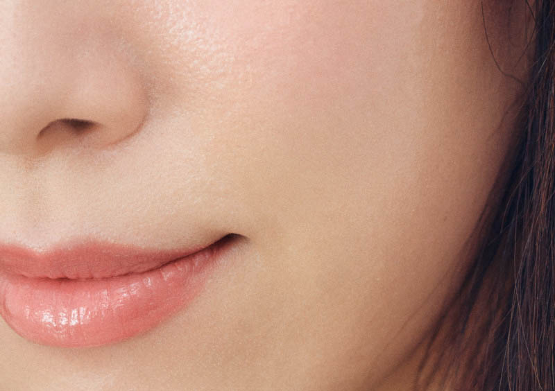 肌本来の魅力を引き出すため、メイク前にフェイスパックと電気バリブラシで丁寧にスキンケアを。ぴんと引き上がった肌に整える。ファンデーションはツヤ感のあるものを選び、厚塗りせず健康的な印象に。