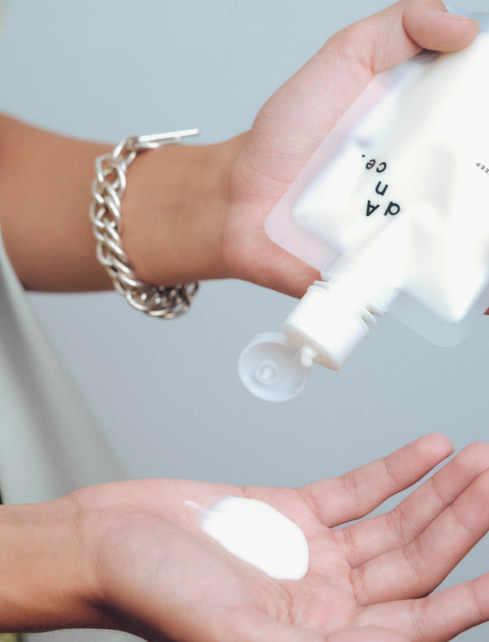 パックで肌を整えた後、メイク感が出過ぎない程度に軽くファンデーションを塗る。鼻筋と頬の高い位置、上唇の先端にハイライトを入れ、ツヤを出す。