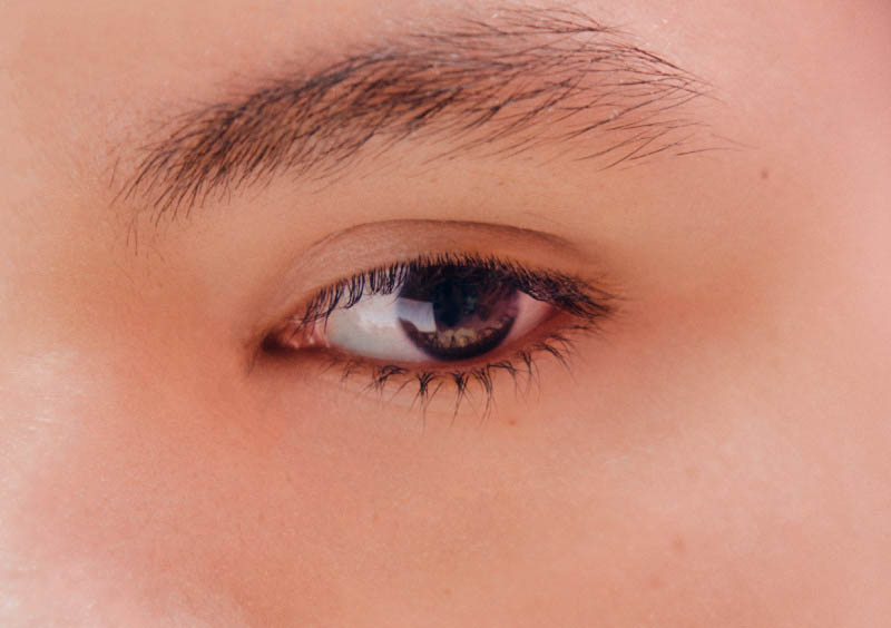眉にツヤと存在感を出すため、透明の眉マスカラで毛流れにそって整える。眉マスカラの代わりにリップグロスやジェル状のヘアスタイリング剤を使っても◎。