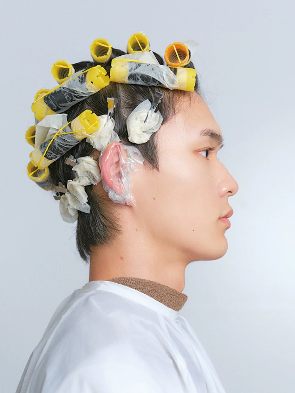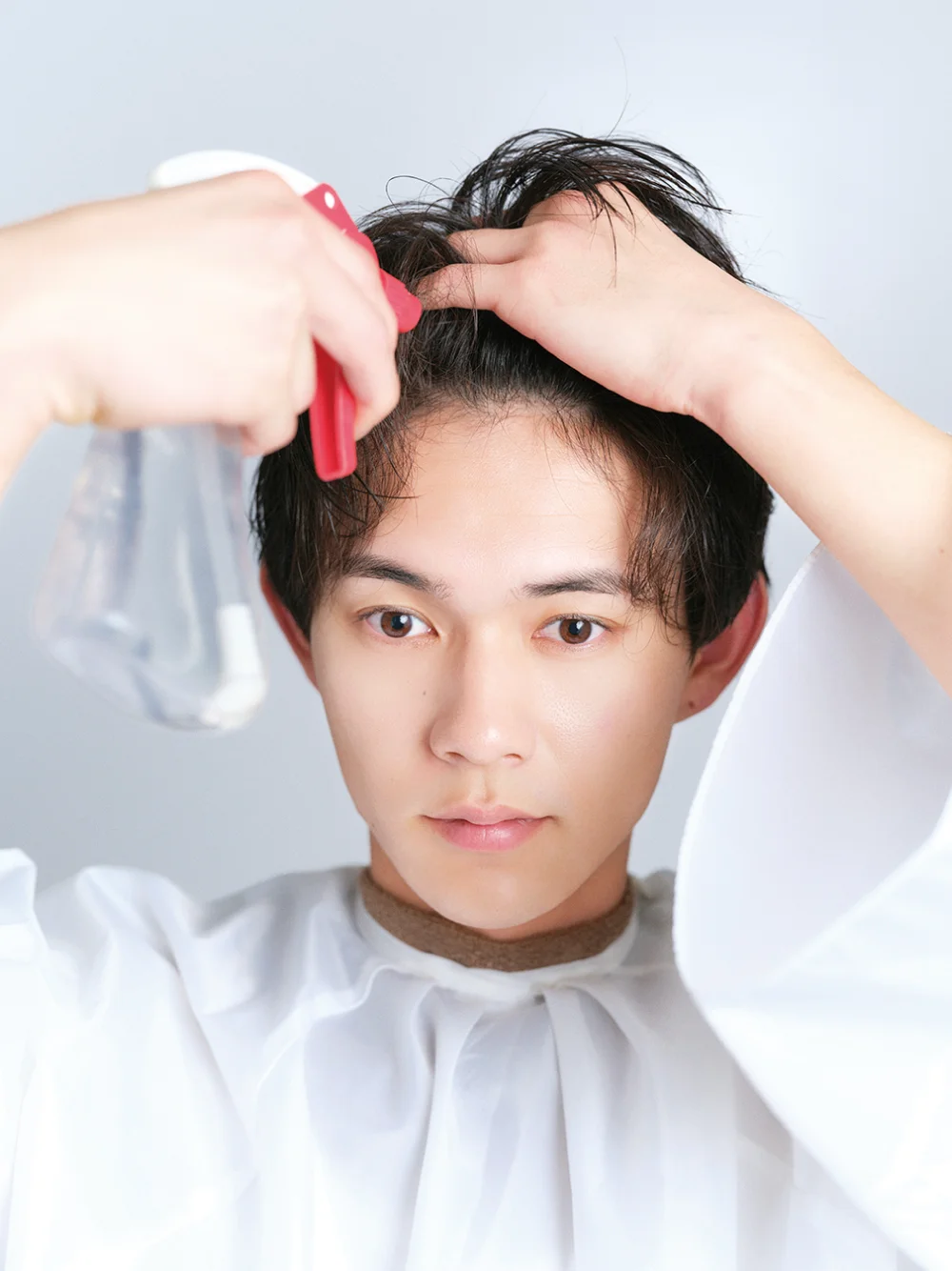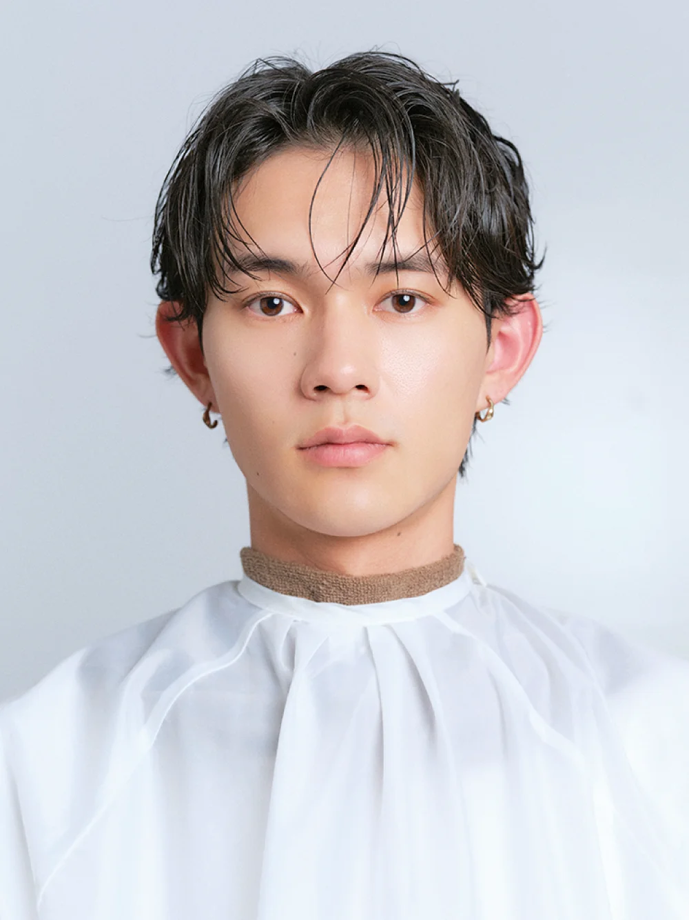 毛流れをつくるためのワンカールパーマではない、ひと味違ったワンカールスタイルです。 髪の生え癖を考慮しながら全体が黄金比の菱形シルエットになるようカールを作り、毛先はかなり先細りにカットして跳ねるような動きを出しました。スタイリングでは前髪を細かく散らすのがポイント。クリエイティブで、かつ万人受けするかっこよさを目指しました!