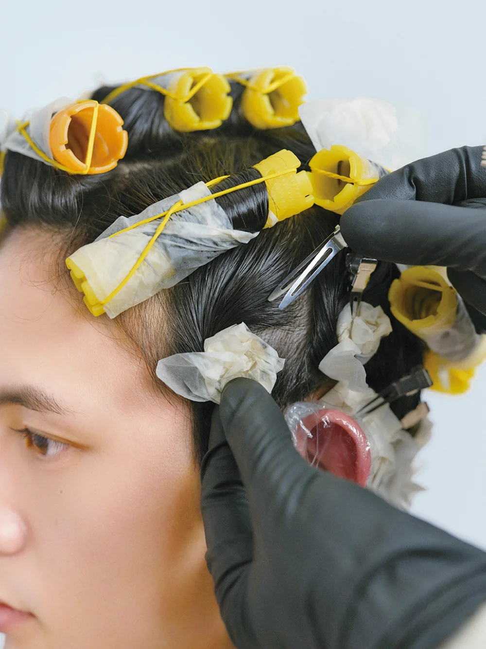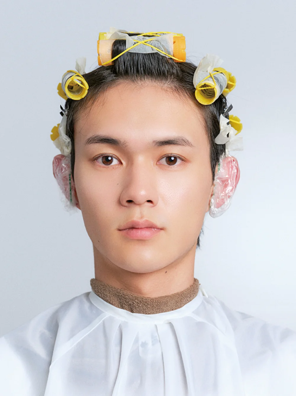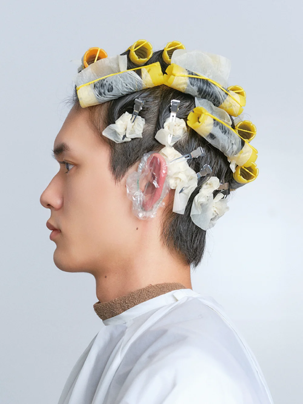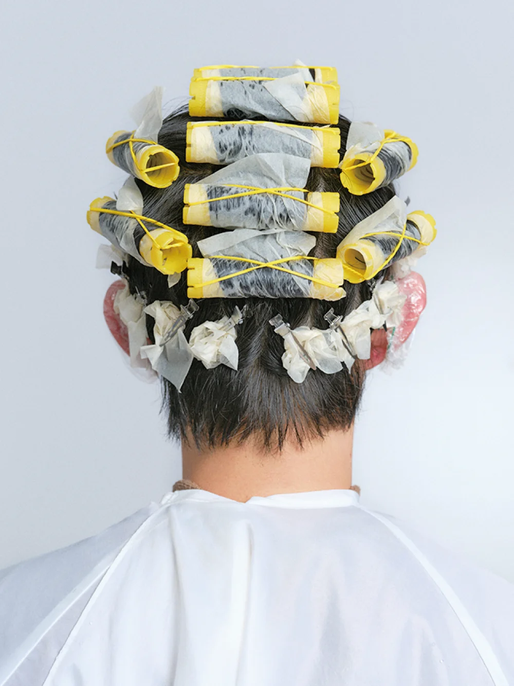 毛流れをつくるためのワンカールパーマではない、ひと味違ったワンカールスタイルです。 髪の生え癖を考慮しながら全体が黄金比の菱形シルエットになるようカールを作り、毛先はかなり先細りにカットして跳ねるような動きを出しました。スタイリングでは前髪を細かく散らすのがポイント。クリエイティブで、かつ万人受けするかっこよさを目指しました!