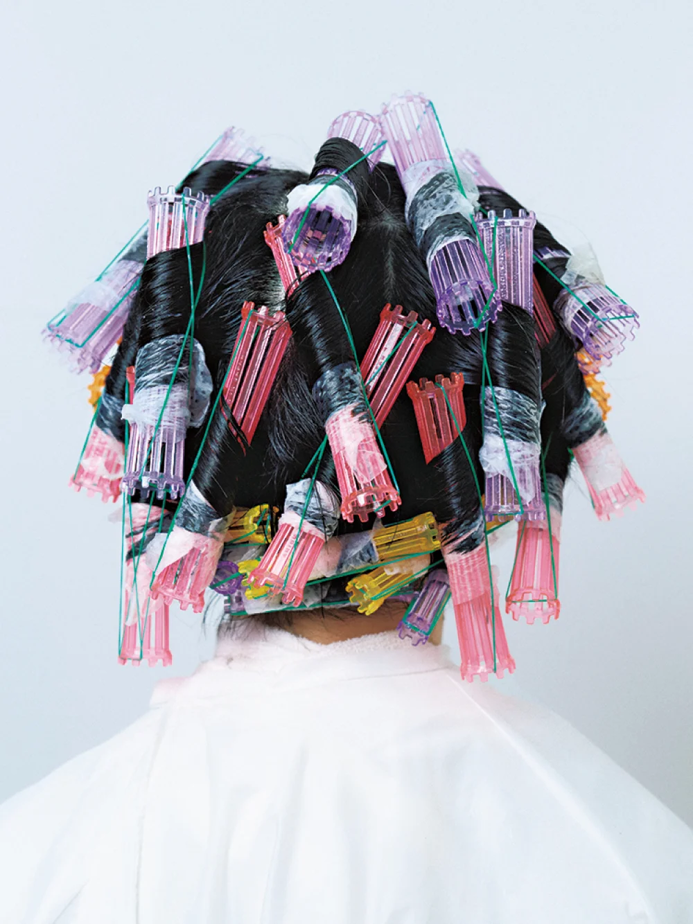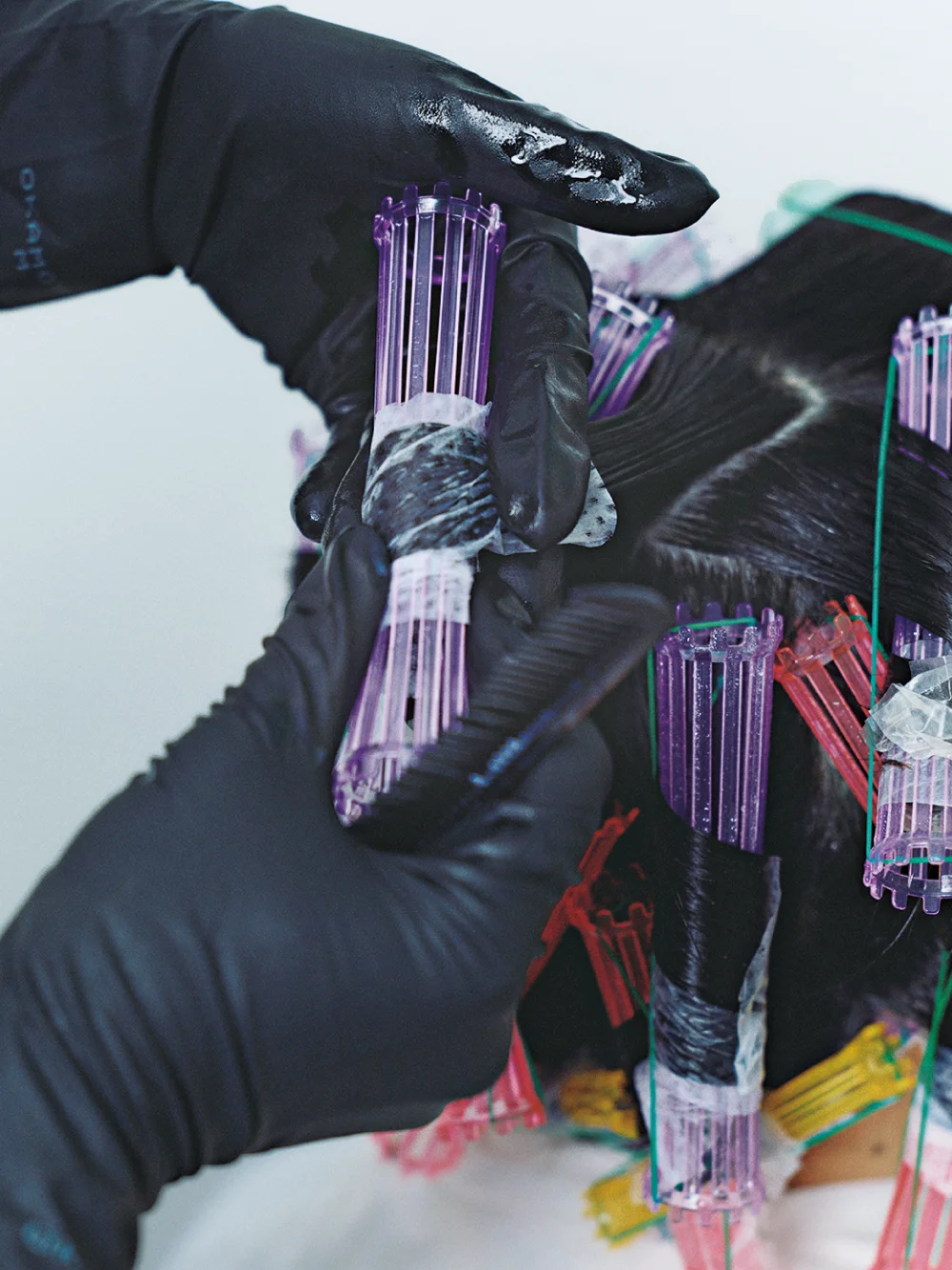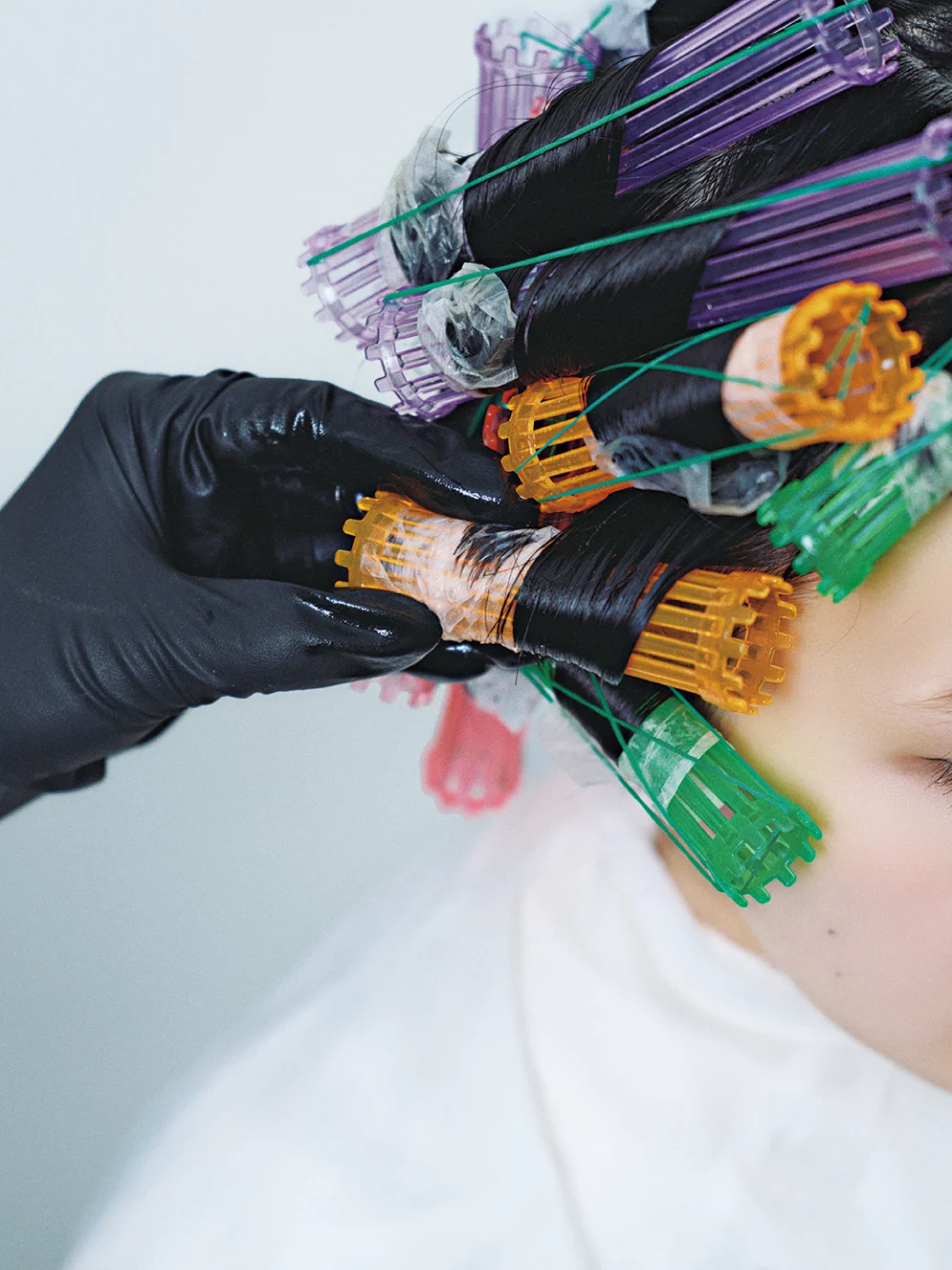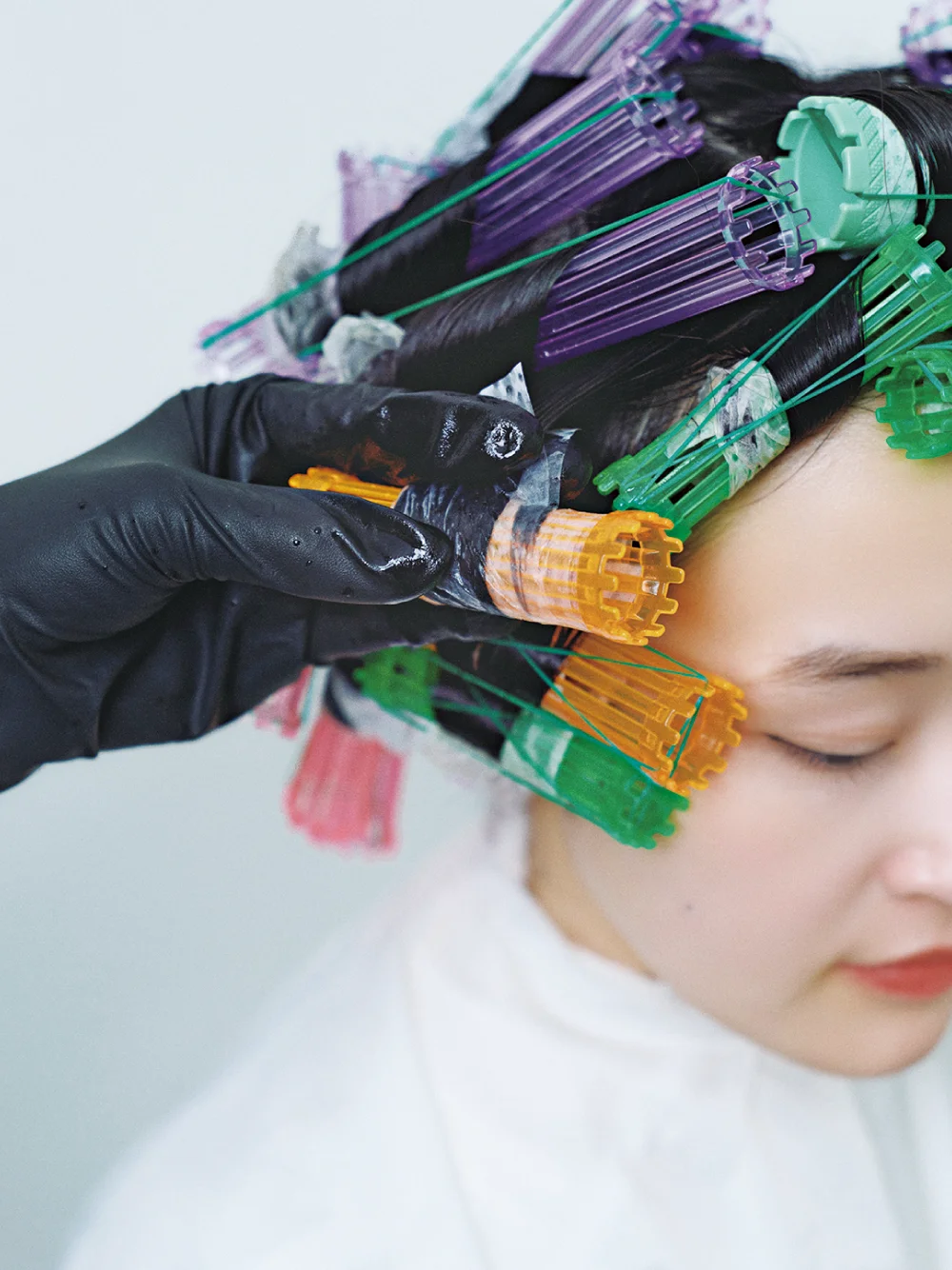 カールが欲しい部分を中心に薬液を塗布しながら、数種の巻き方を組み合わせてワインディング。