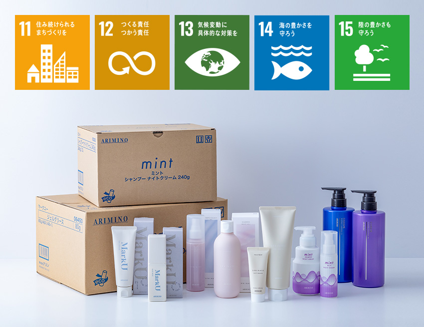 2022年4月1日より施行されたプラスチックの資源循環を目的とした法律「プラスチック資源循環促進法」の基本原則の4R*に基づき自社基準をクリアした製品に「アリミノ エコバトンマーク」を表示していきます。