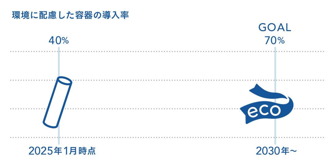 深刻化する気候変動課題やプラスチックごみ問題の解決に向け、私たちは「2030年までに国内主力製品の70%を環境配慮製品にすること」を新たに目標として掲げました。2022年4月1日より施行されたプラスチックの資源循環を目的とした法律「プラスチック資源循環促進法」の基本原則の4R*に基づき自社基準をクリアした製品に「アリミノ エコバトンマーク」を表示していきます。