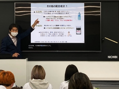 We provide lectures on hair science at educational institutes, including beauty schools and universities. Our company aims to expand the entire industry by extensively disseminating cosmetic-related knowledge outside the company, including to technical partnerships with overseas companies.