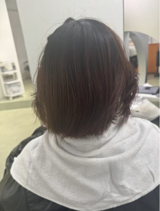 少しピンクを忍ばせてスタイリングはセミドライで柔らかさがでるように。