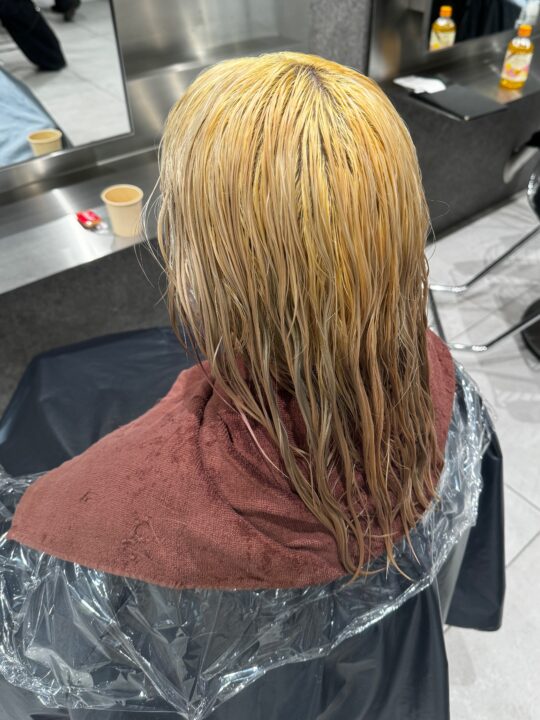 アリミノ ブリーチ120とブリーチ OX 1%でほとんど脱染できます。
