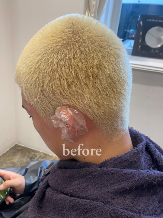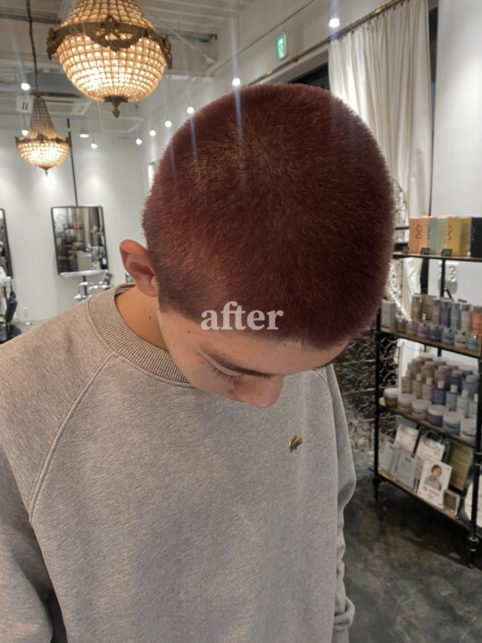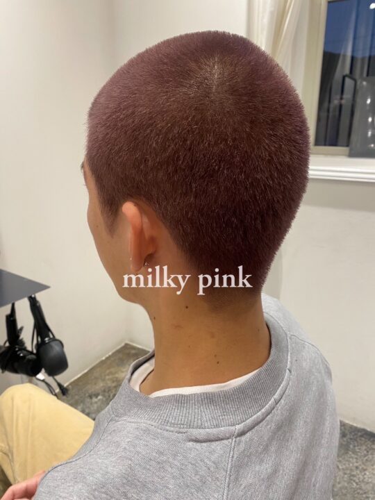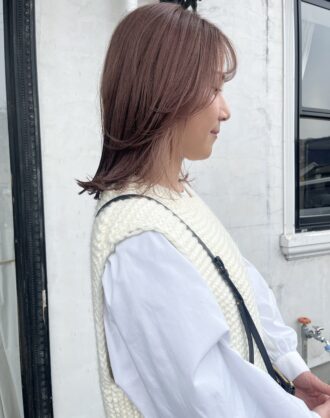 ワンブリーチベースにブラウン過ぎないピンクすぎない柔らかいカラーを塗布。