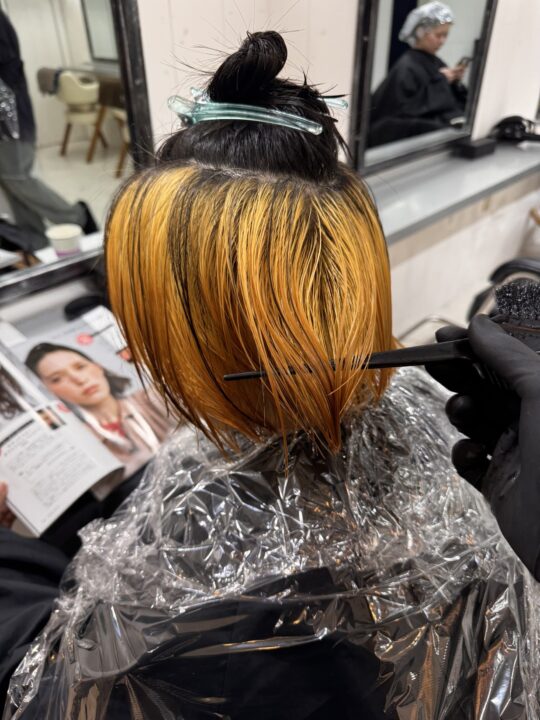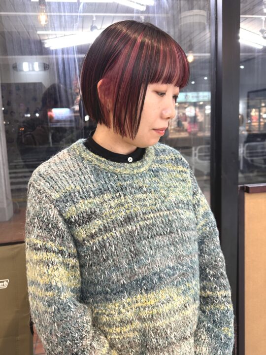 ブリーチ1回のベースに柔らかい暖色寄りのピンクです。