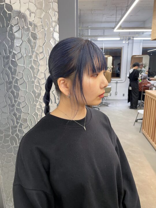 アッシュのくすみとブルーの色みを絶妙に組み合わせています。