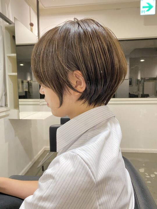 髪が太くしっかりしていて赤みが強いので、マット系とブルー系で赤みを抑えました。