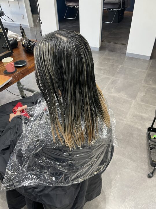 数回カラーをしている状態、ややダメージあり