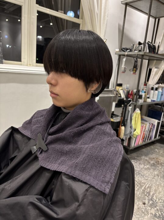 パーマと一緒にやる事によって動きが見えやすくなり、印象が重くなりやすい黒髪パーマに抜け感が出るようにしました。