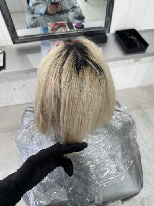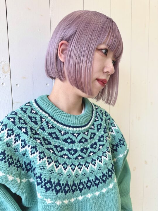 PUREラインのパープルで染めることで色落ちは白っぽくなりあまり残留しないので、次回もリタッチのみでキープが出来るカラーです!