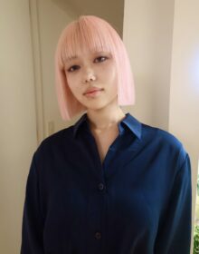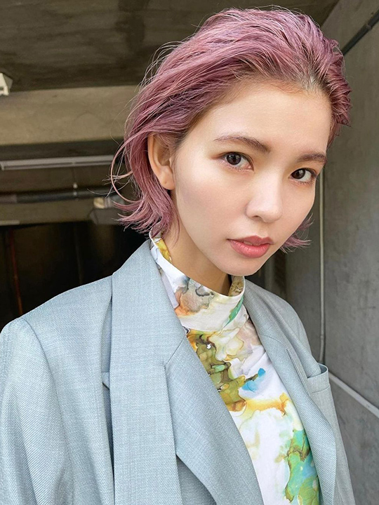 甘くなりすぎないくすみがかったピンクでハンサムにオールバック仕上げ。