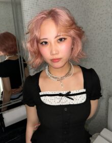 高明度のピンクをベースに、もともと入っているローライトのブラウンはそのままに活かすことで桜の木のようなイメージです。