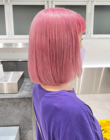 濃いピンクだと青みが強くなり渋い印象の色になりがちなので、赤みを加える工夫をしています。