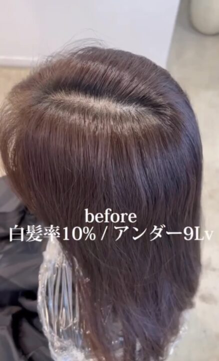 所々にちらほら白髪が生えており、白髪量も少ない為、ハイブリッドラインのNGを使用しました。