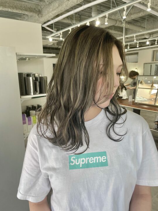ベースが全頭ブリーチだったので塗り分けしてコントラストハイライトを作りました