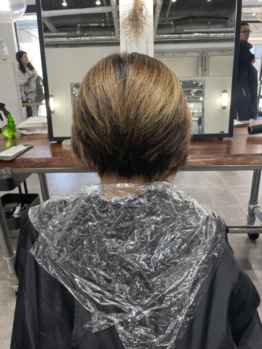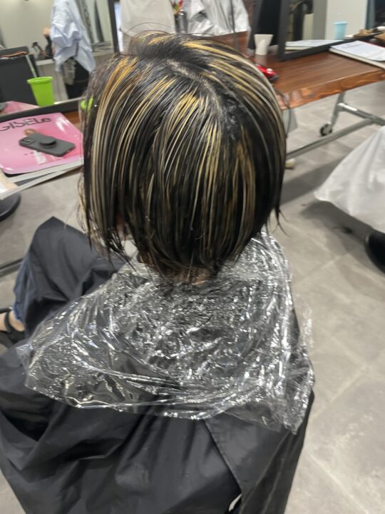ハイライト履歴があり既存のハイライトを広くブリーチ。