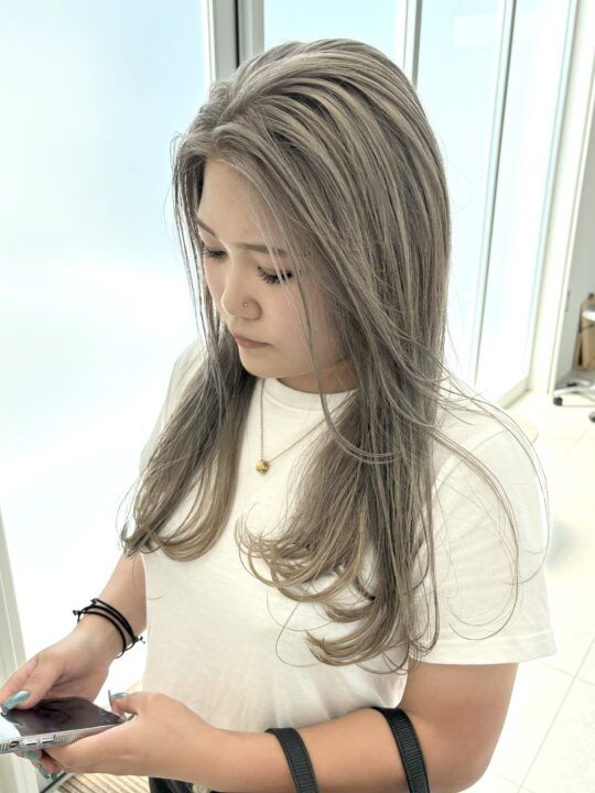 ブリーチ2〜3回で出来るシルバーベージュは大人の色気がでる誰もがやってみたいハイトーンカラー♪