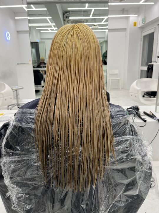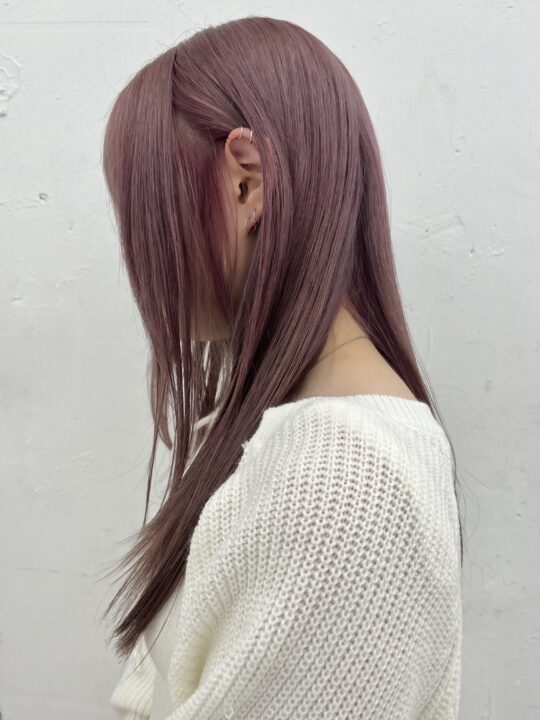 毛先は度々入れていた中明度のブラウンの残留や、寒色系の残留