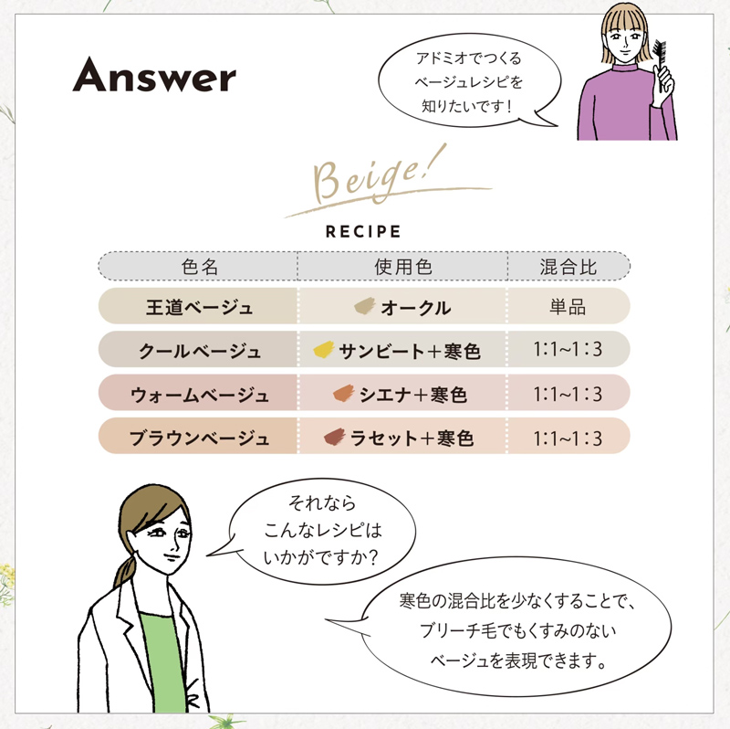 【アドミオ】Question & Answerーシエナ・ラセットの色特徴&アドミオでつくるベージュレシピー